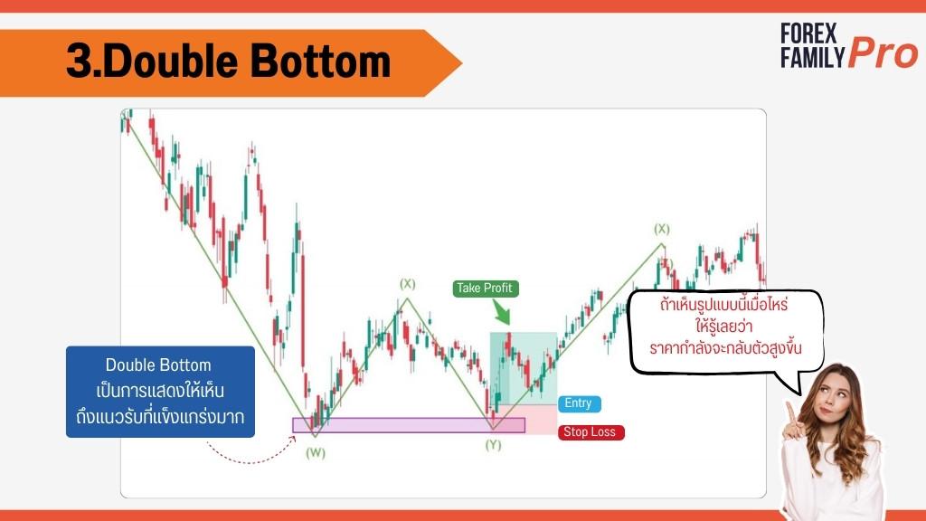 - รูปแบบ Double Bottom เป็นการแสดงให้เห็นถึงแนวรับที่แข็งแกร่งมาก